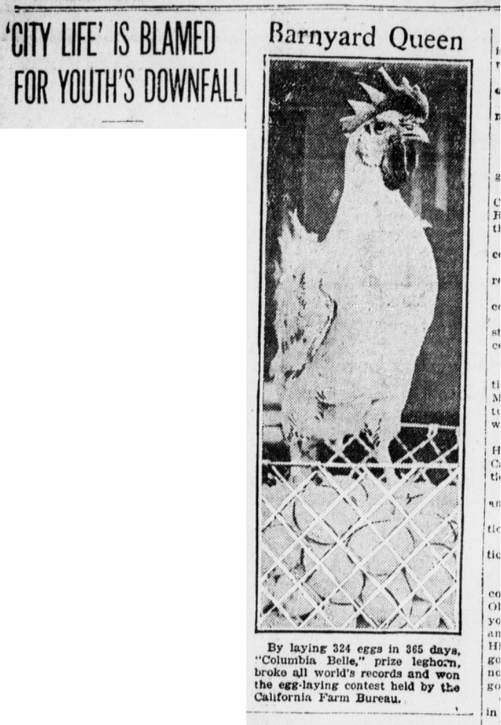 Until then, Happy 100th Anniversary to these adjacent articles from the Daily East Oregonian, one blaming city life for kids these days, another celebrating a true Barnyard Queen.